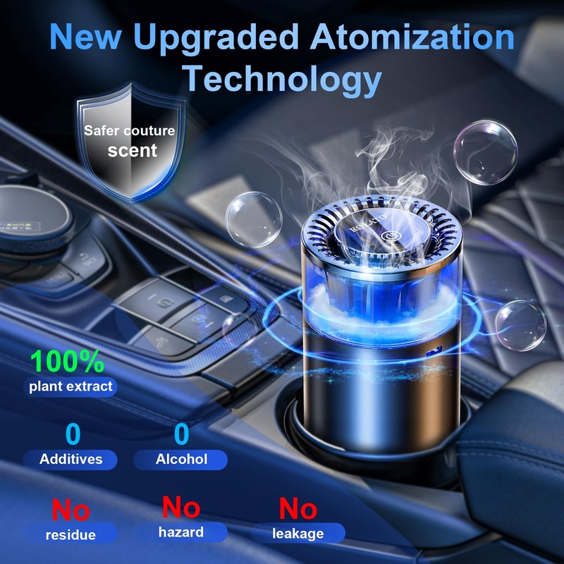 - 【UNIQUE ATOMIZATION TECHONOLOGY】- Our car air freshener can be used as a car diffuser. It uses the most advanced solid balm atomized wave diffusion technology. Built-in vibration sensing chip, automatic on/off. There are currently three premium limited edition scents available, with more still in development!