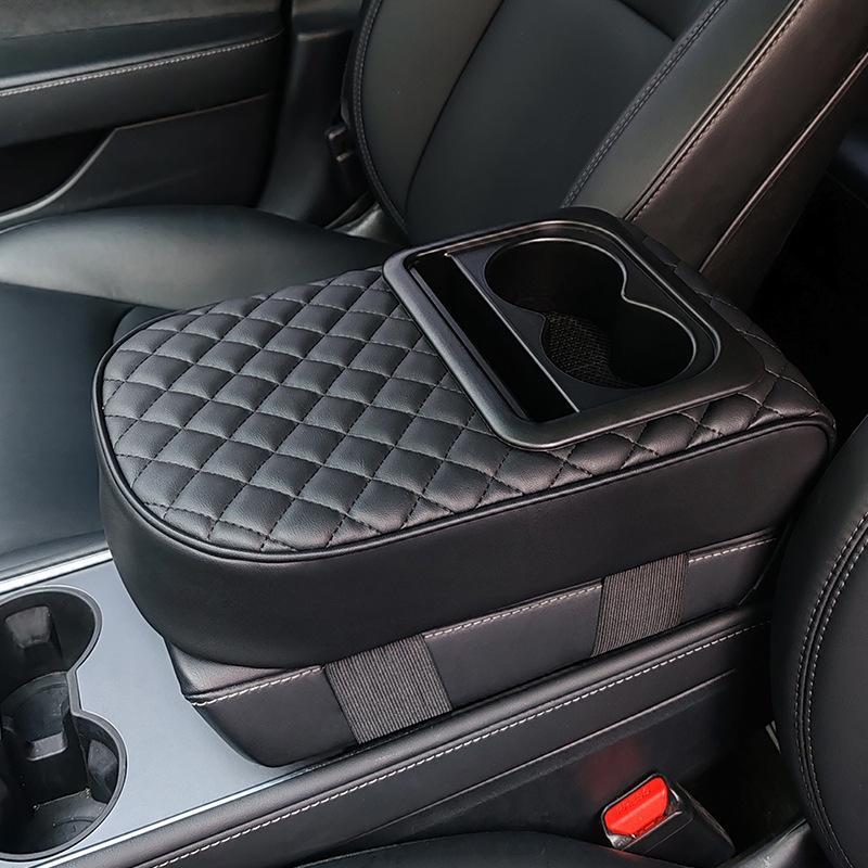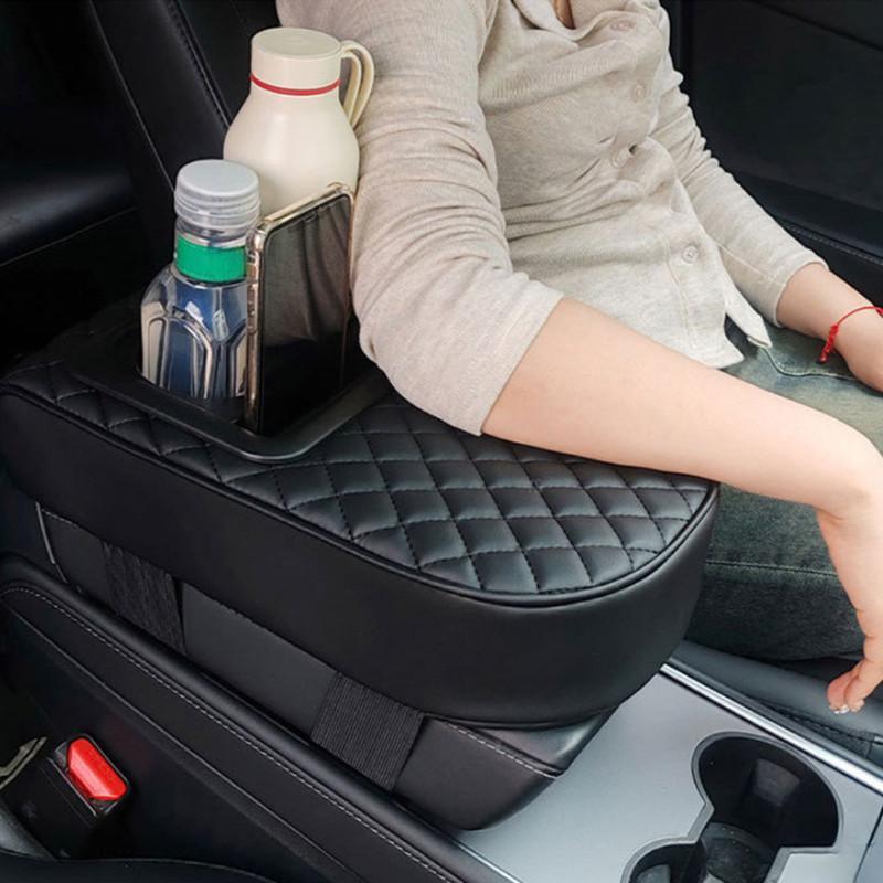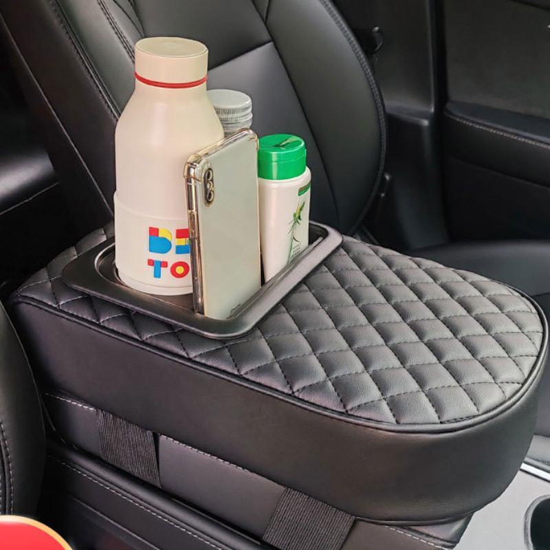 Car Armrest Box Heightening Pad with Storage Box Cup Holder, PU Leather Car Armrest Box Cushion, Auto Interior Accessories