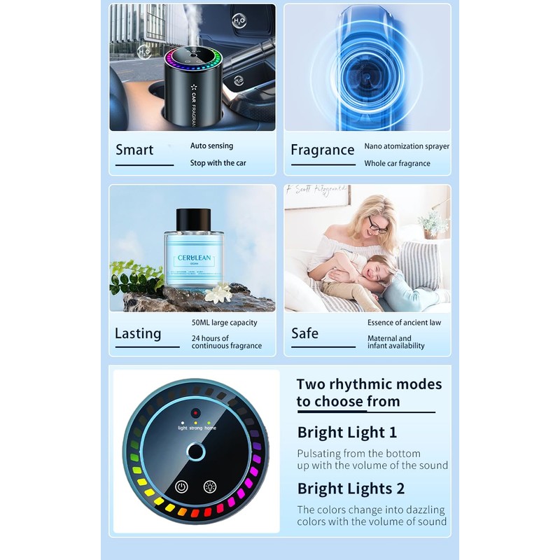- CUSTOMIZABLE EXPERIENCE: Multiple light modes and adjustable mist settings allow personalized aromatherapy experience while driving