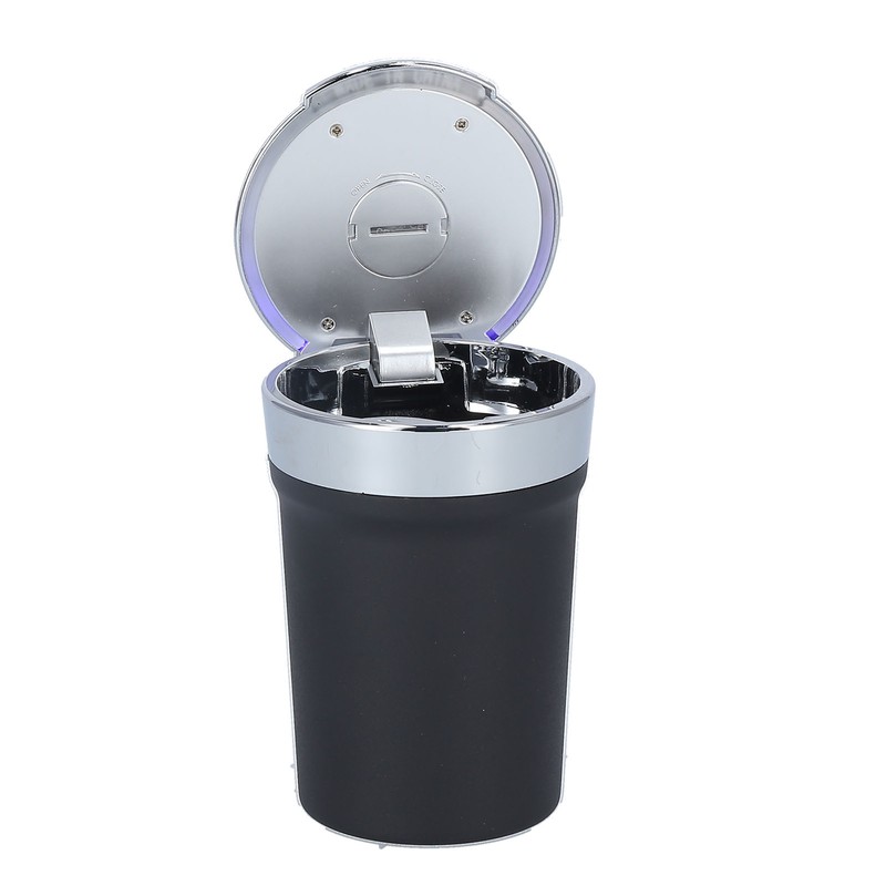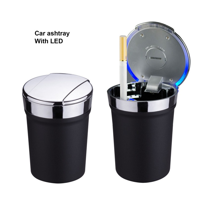 Car Ashtray ABS Portable Cylinder Shape Ash Tray with Blue LED Light for Travel Office