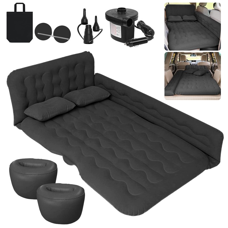 ISWEES Car Bed SUV Air Mattress, Car Air Mattress with Electric Pump, 2 Inflatable Pillows and 2 Footrests for Back Seat, Side Seat,Trunk Sleeping, Thickened Camping Bed - Black