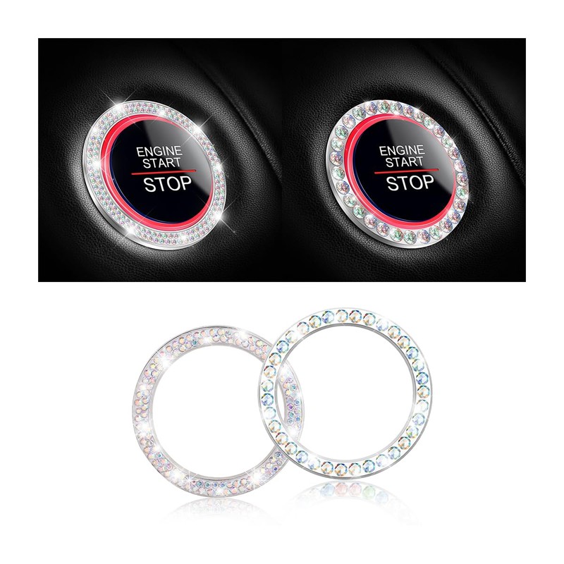 • [Compatibility] Suitable for most standard size ignitions key and button, applicable for ignitions, knobs, etc. Measuring 1.5 inch in outer diameter and 1.25 inch in inner diameter. If you are not sure about size, please get in touch with us. Package includes 2 bling ring emblem (one row and two rows rhinestone design ) and 2 adhesive tape.