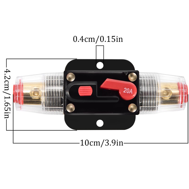 Car Circuit Breaker 12V-24V DC Manual Reset Switch Car Audio Circuit Breaker 20A Automatic Fuse Holder for Car Solar Inverter System Protection