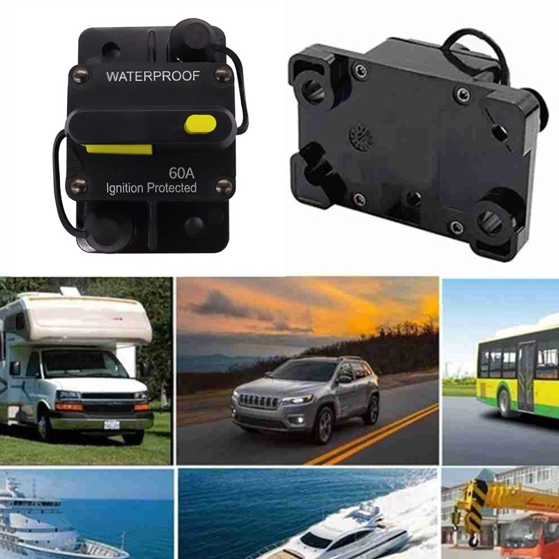 Car Circuit Breaker 30-300A, DC 12-48V Waterproof Car Fuse, Circuit Breaker with Manual Reset, Fuse Holder Inverter for Engine, Car Marine Stereo Audio (60A)