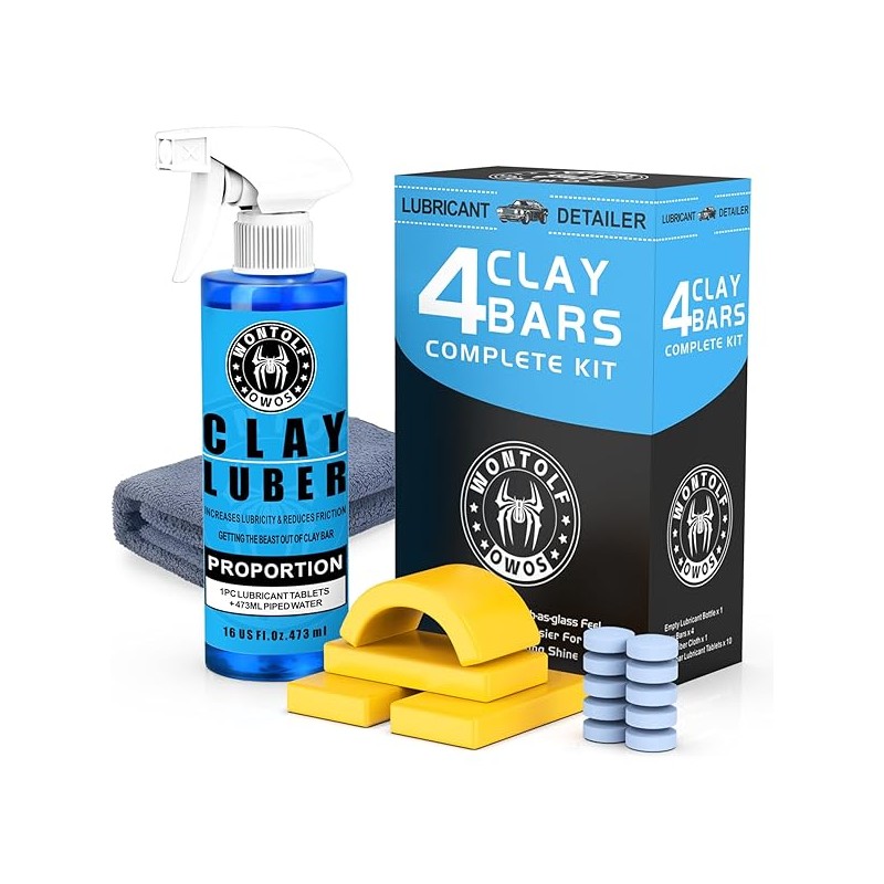 Car Clay Bars Auto Detailing and Clay Luber Synthetic Lubricant Kit, 4 Clay Bars, Clay bar Lubricant Tablets 10 Pack(1pc=16 fl oz), Spray Bottle and Microfiber Towel for Car Detailing Cleaning