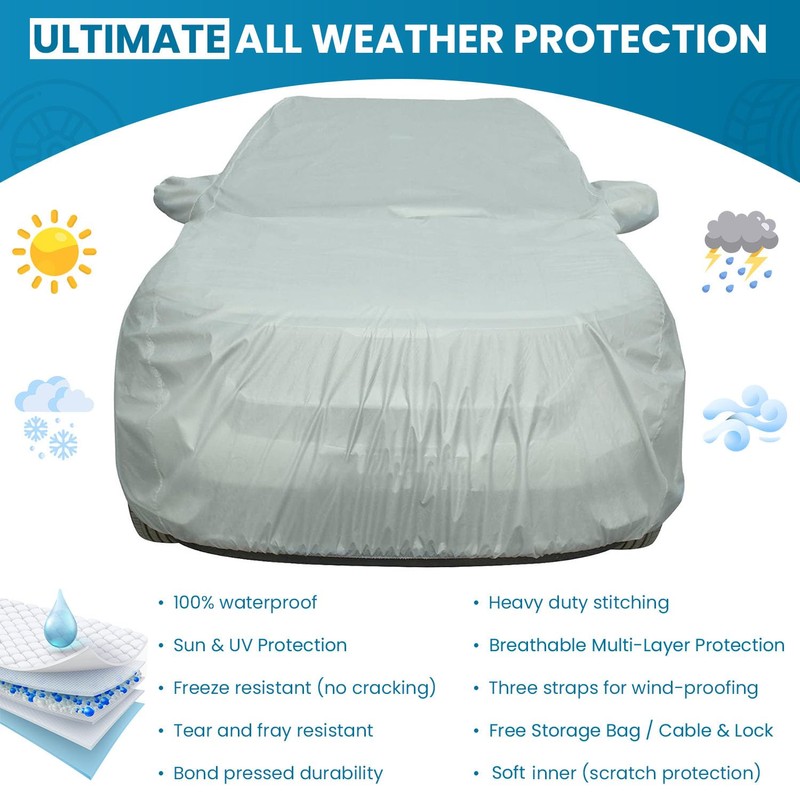 - All-Weather Performance: Featuring a waterproof coating and UV-resistant material, our cover keeps your car safe from rain, snow, and sun damage, preserving its appearance year-round.