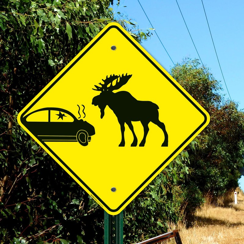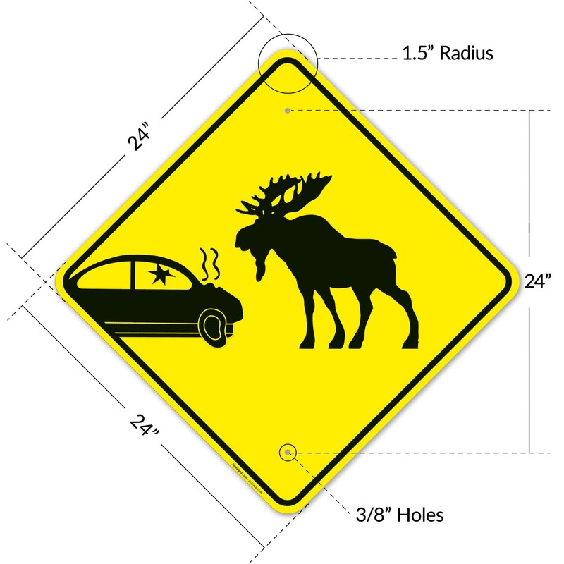 Car Crash and Moose Graphic Sign, 24x24 Inches, Rust Free .063 Aluminum, Fade Resistant, Made in USA