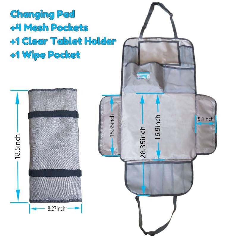 - - Ample Storage - Features 4 mesh pockets for diapers, bottles, and more, plus a dedicated wipes pocket and clear tablet holder. Keeps essentials organized and baby entertained during car rides.