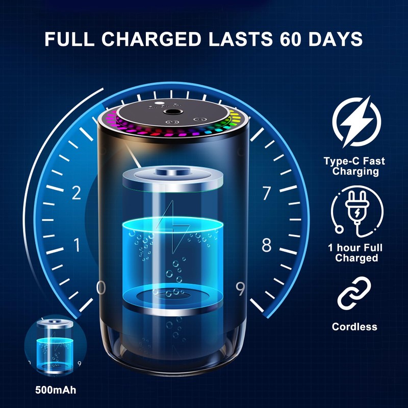 - Smart &Long Battery life: Our car air freshener can be used as an essential oil diffuser and car diffuser. It adopts the most advanced wave diffusion technology for atomization. Built-in vibration sensing chip, Automatic on/off. Charges in two hours and has a range of up to 30 days