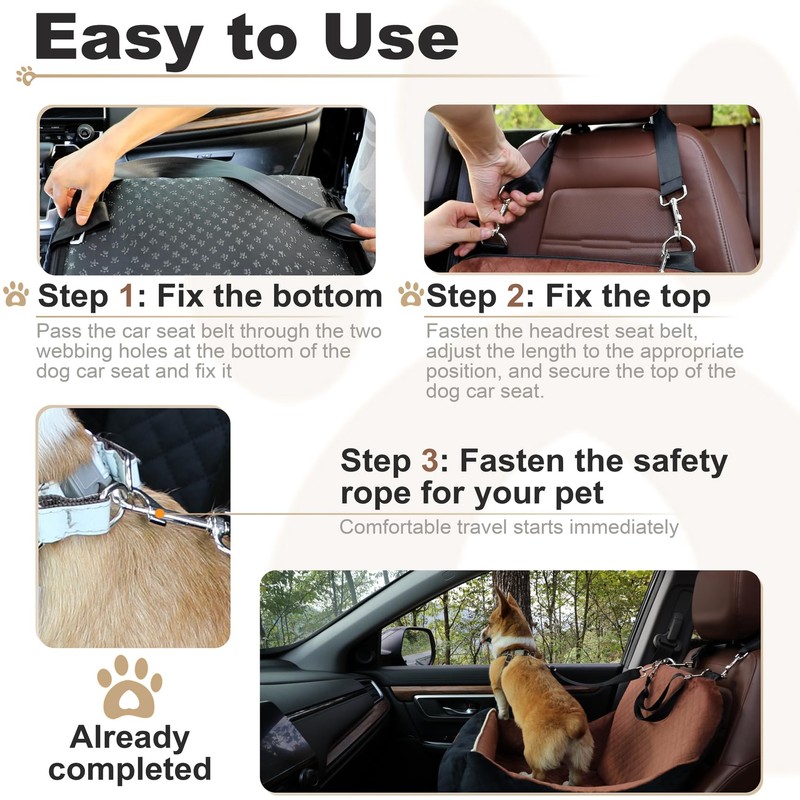 - A safe dog car seat: Two adjustable safety ropes ensure that your dog stays safely in the dog car booster seat, while you can focus more on driving.