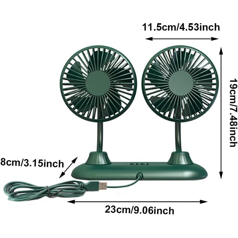 Car Fan,Dual Head USB Fans for Car, USB Powered Car Seat Fan, 360° Rotatable & 3 Strong Wind 12V Table Fans Adjustable for Vehicles SUV RV (Dark Green)