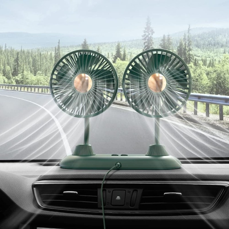 - 【Strong Wind & Quiet Operation】– Equipped with dual heads, this car fan delivers strong, steady airflow to enhance air circulation, clear windshield moisture on rainy days, and help reduce interior heat and dust—all while operating quietly to minimize distractions.