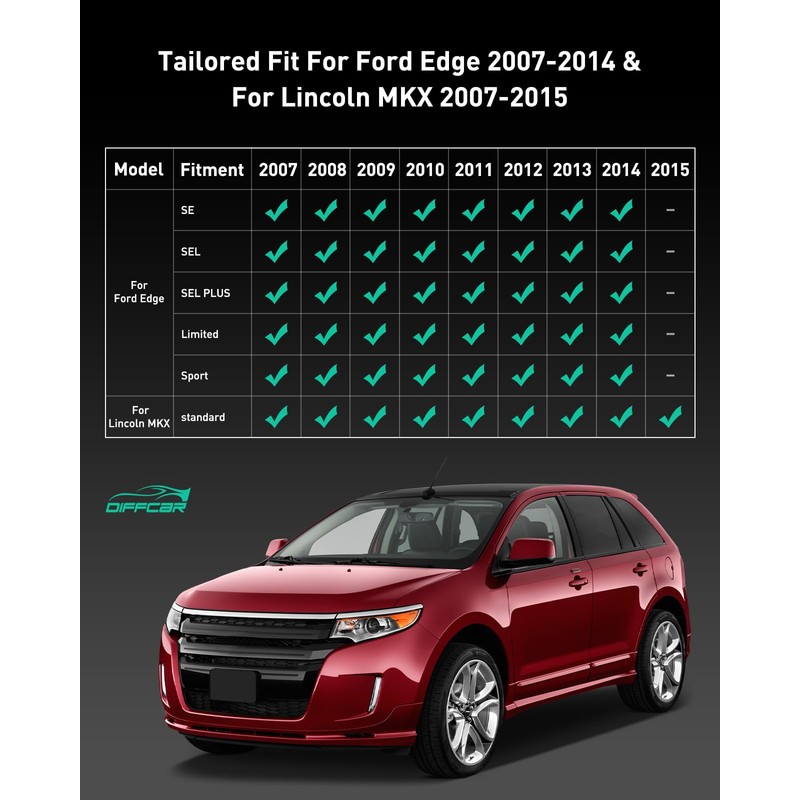 • Custom Fit for Ford Edge 2007-2014 & for Lincoln MKX 2007-2015: 4PCS Black Car Floor Mats & Cargo Liner tailored to fit for Ford Edge 2007 2008 2009 2010 2011 2012 2013 2014 & for Lincoln MKX 2015 2014 2013 2012 2011 2010 2009 2008 2007 models