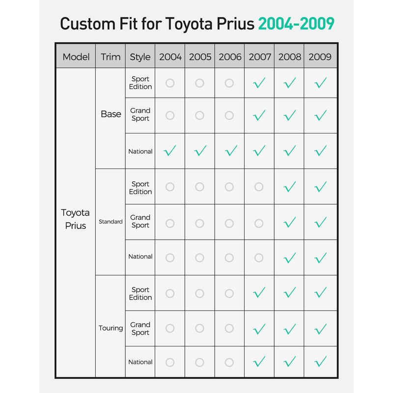 - Ideal Fit for Toyota Prius: Custom-designed for Prius 2004 2005 2006 2007 2008 2009, this four-piece set of all-weather floor mats ensures a precise, snug fit for the front and rear areas, providing complete coverage and ultimate compatibility.