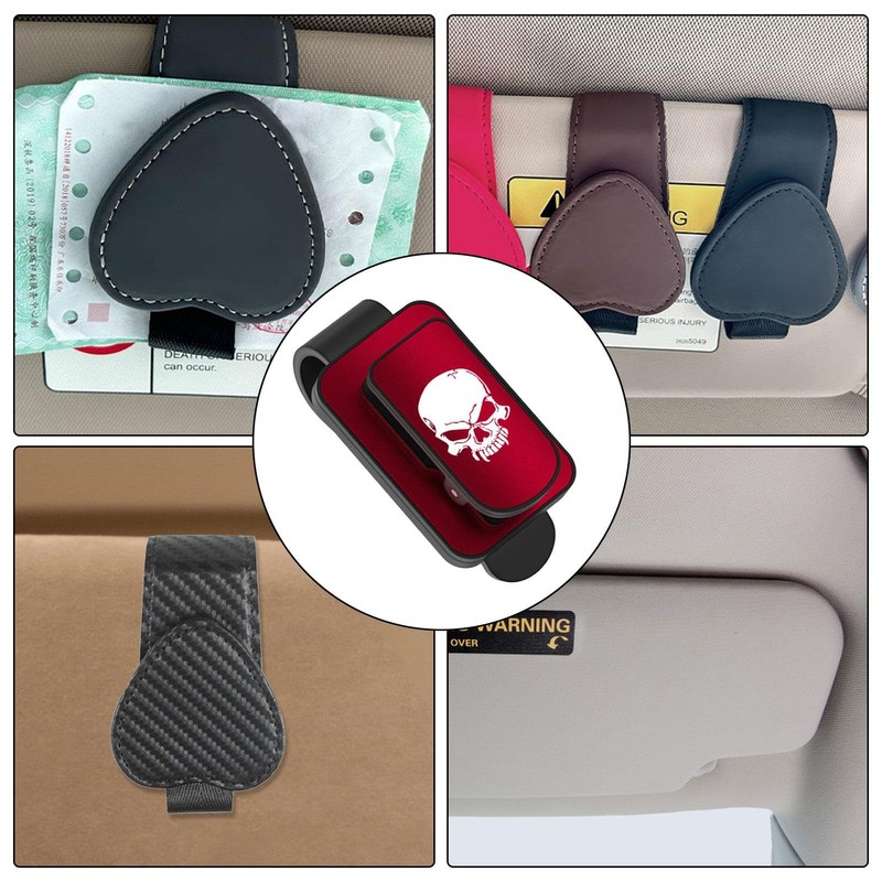 - تChic Skull Pattern: Add an aesthetic upgrade to your car's interior with our unique skull pattern car visor sunglasses holder. Show off your personality and taste in detail while keeping your sunglasses easily accessible and organized.