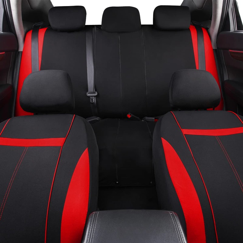 CAR-GRAND Universal Fit Sporty Cloth Full Set Car Seat Covers, Fit for Car, Truck, Sedan, Vans, SUV, Breathable, Washable, Airbag Compatible, Zipper Design