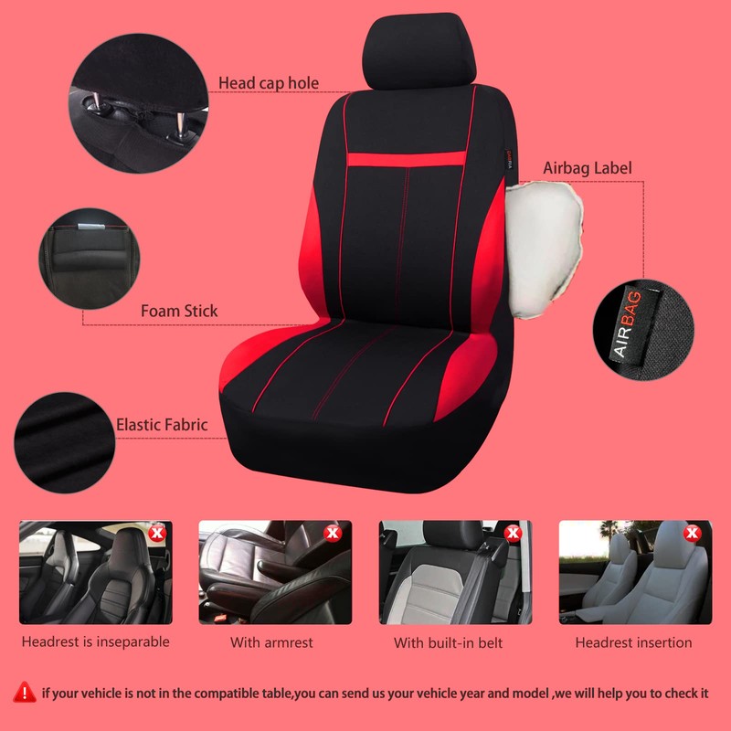 Compatibility Guide Fit Vehicles With The Features:1.Airbag Compatible Universal Fit the Car with Airbag make sure the normal using condition of Airbag in case of Emergence to protect your safety 2. Detachable Headrest and Airbag and Armrest Compatible 3.Solid Bench and Split Bench ,Cup Holders Compatible