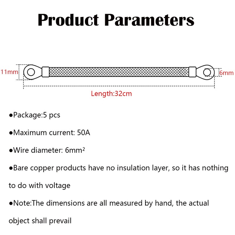 Car Earth Strap, CTRICALVER Universal Automotive Heavy Duty Engine Ground Strap Ground Cable Copper (T-2), Strong and Durable. (5pcs)