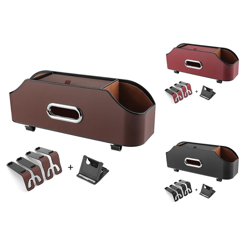 Car Headrest Backseat Organizer Partition Design Multi-Functional Storage Box with Cup Holder Tissue Box Headrest Hook Car Seat Back Organizer for Children and Adults Car Travel Accessories Brown