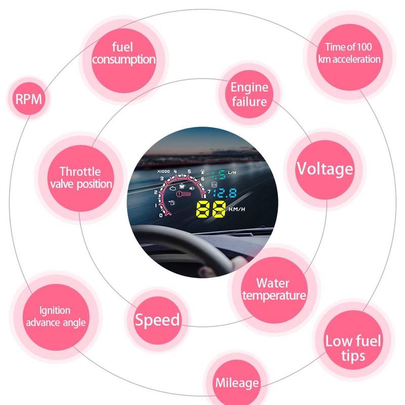 • 🚗Comprehensive Display: Vehicle speed, engine speed, water temperature, fuel consumption, mileage, low fuel tips, engine failure.