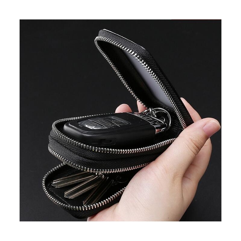 Car Key Chain Bag Double Zipper Leather Protection Key Coin Holder Keyring wi...