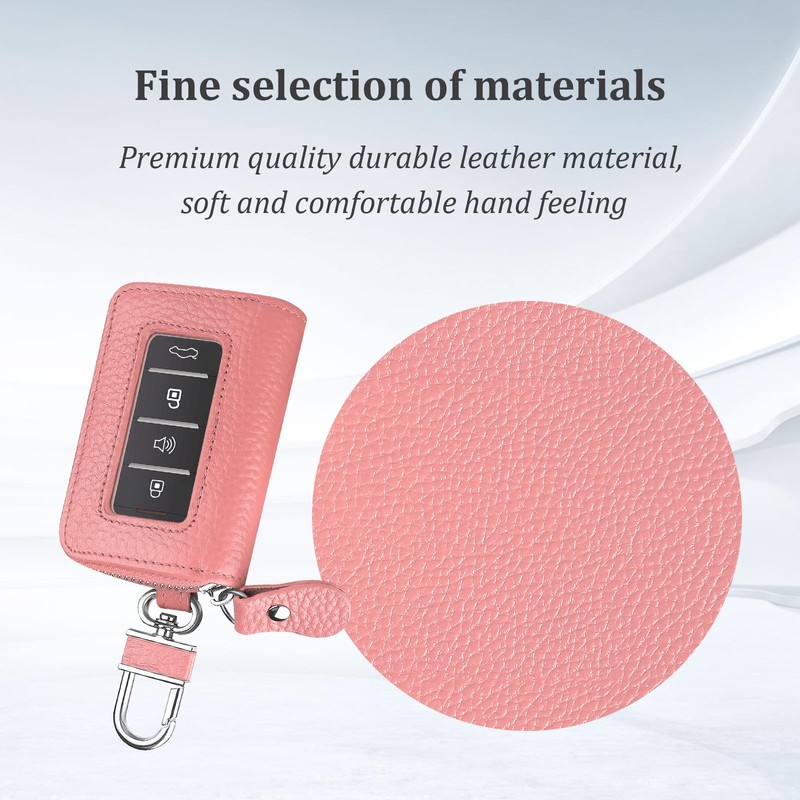 • Good Quality Materials: The key fob cover is made of leather, showing Good durability and resistance to wear and tear, providing comprehensive and long-lasting protection for your keys. The metal clasp is incorporated to provide a silky smooth feel