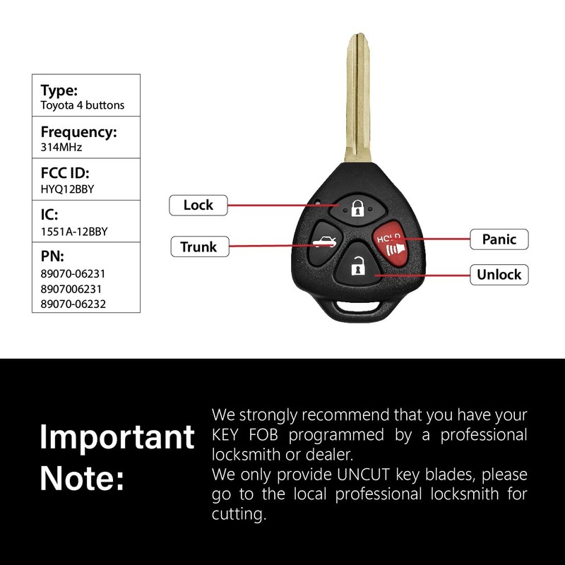 • Compatible Vehicles: Part Number: 89070-06231 FCC ID: HYQ12BBY. Replacement for 2007 - 2010 Toyota. For full complete list, please check our product description