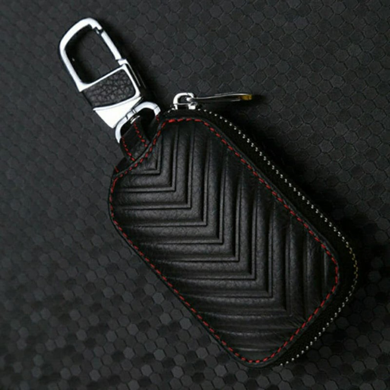 Car Key Holder Cover Key Chain Bag Leather Remote Fob Zipper Case
