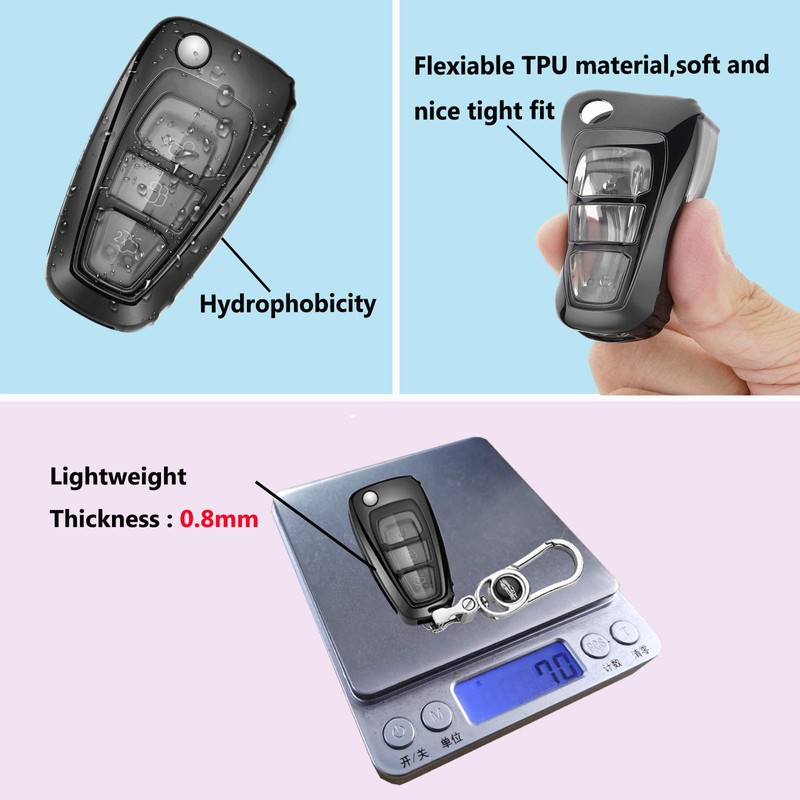 - [Multi-color options]:Five types of key covers with trendy appreance, while the botton area is transparent TPU, significantly avoiding the common problems of paint dropping in opaque design.Great ford car accessory, expeciall for ford fiesta/ transit /focus /kuga car key accessory,nice choice for you or families'gift.