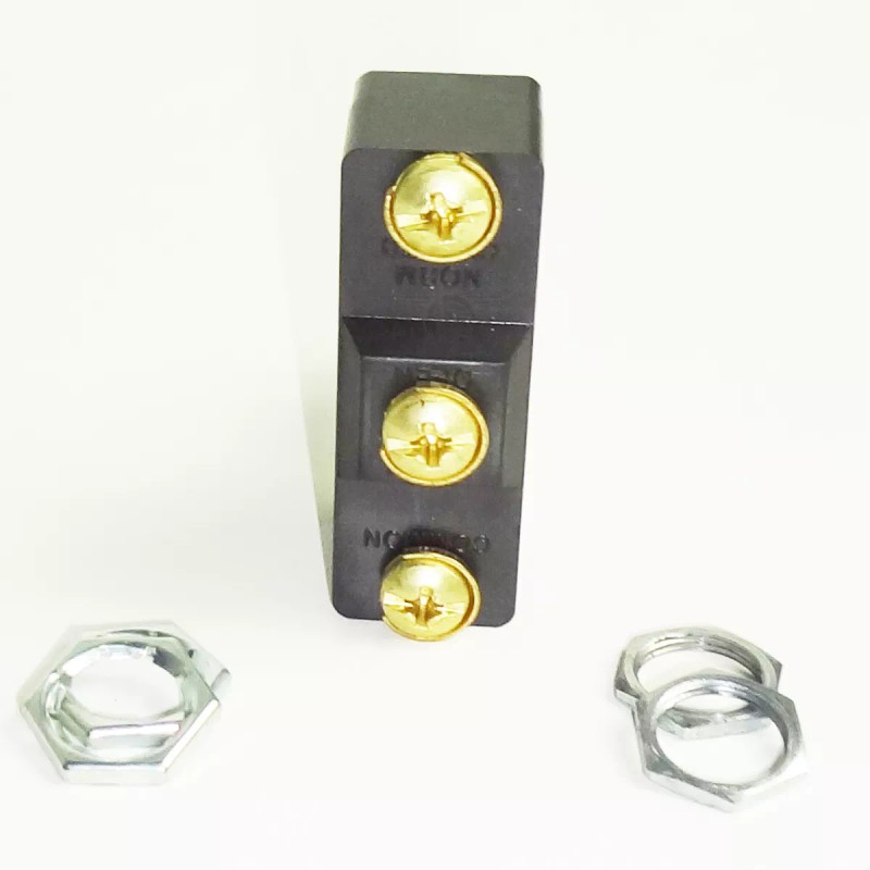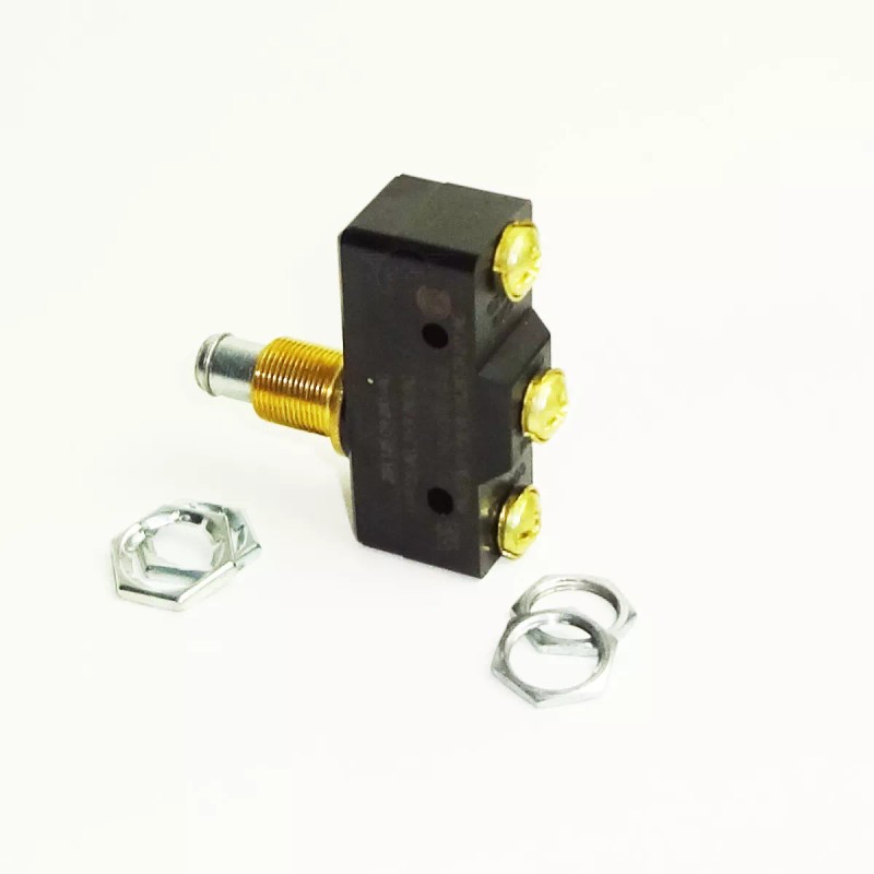 It has 3 screw terminals on the back/ bottom of the Micro switch where wires are connected (wires typically only connected to 2 out the 3 terminals). The terminals are usually marked "NO" "NC" "COMMON" or "COM" and the switch can be set up for normally open or normally closed operation.The front of the switch has a metal button/ plunger which is what actuates the switches operation. The plunger goes into a brass colored housing which has threads and nuts allowing the switch to be mounted to limit switch housings. These switches are high quality units meeting all electrical codes and requirements. All our switches have been 10,000 press tested to ensure long life. This switch will get you back up and running and put your lift back to work for you!