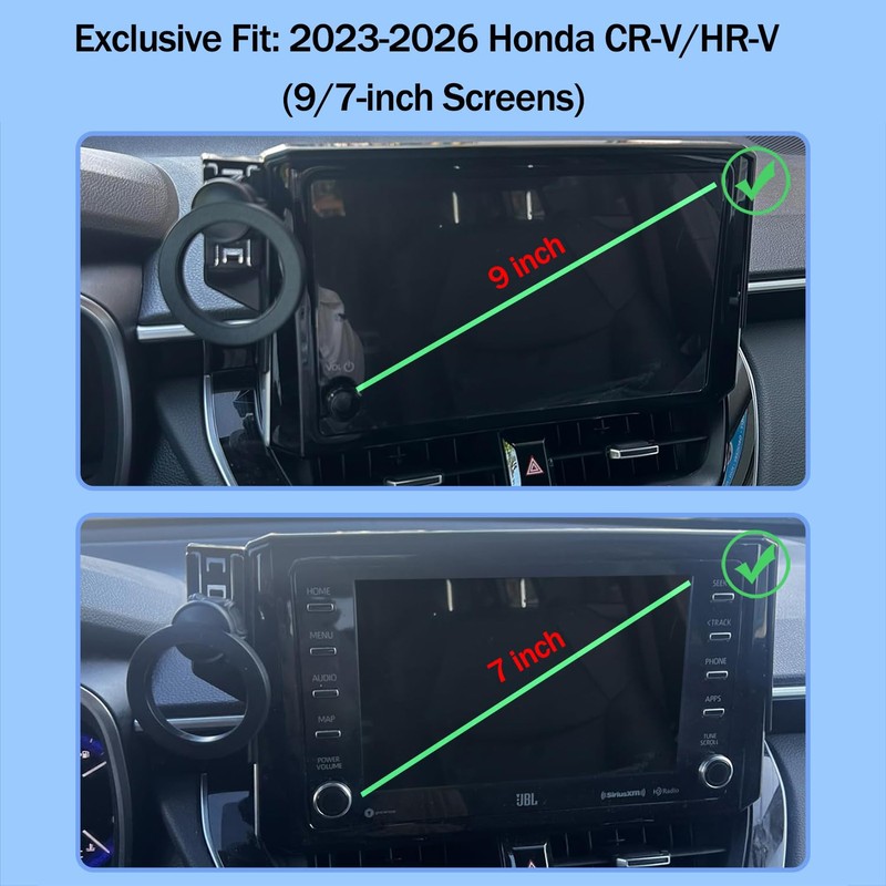 - 【Perfect Fit for Honda CR-V & HR-V】:This phone holder is designed for 2023 2024 2025 2026 Honda CR-V & Honda HRV.this phone mount ensures seamless compatibility, Please verify your car’s screen size before purchase(9/7 inch screen only)