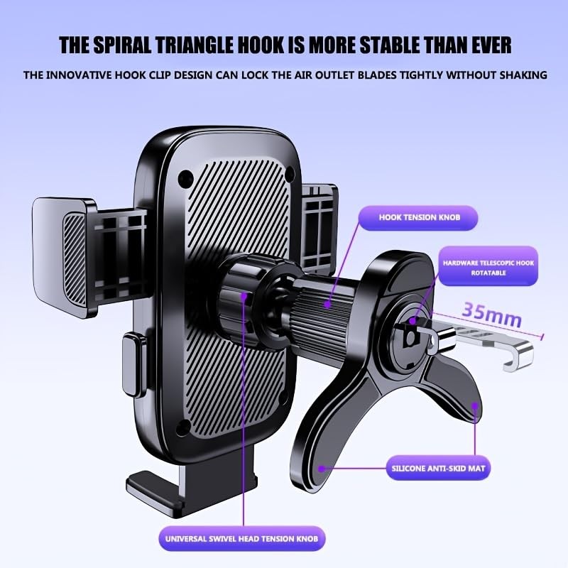 - SECURE AIR VENT MOUNTING: Sturdy metal hook design clips firmly to vehicle air vents, providing stable phone support while driving
