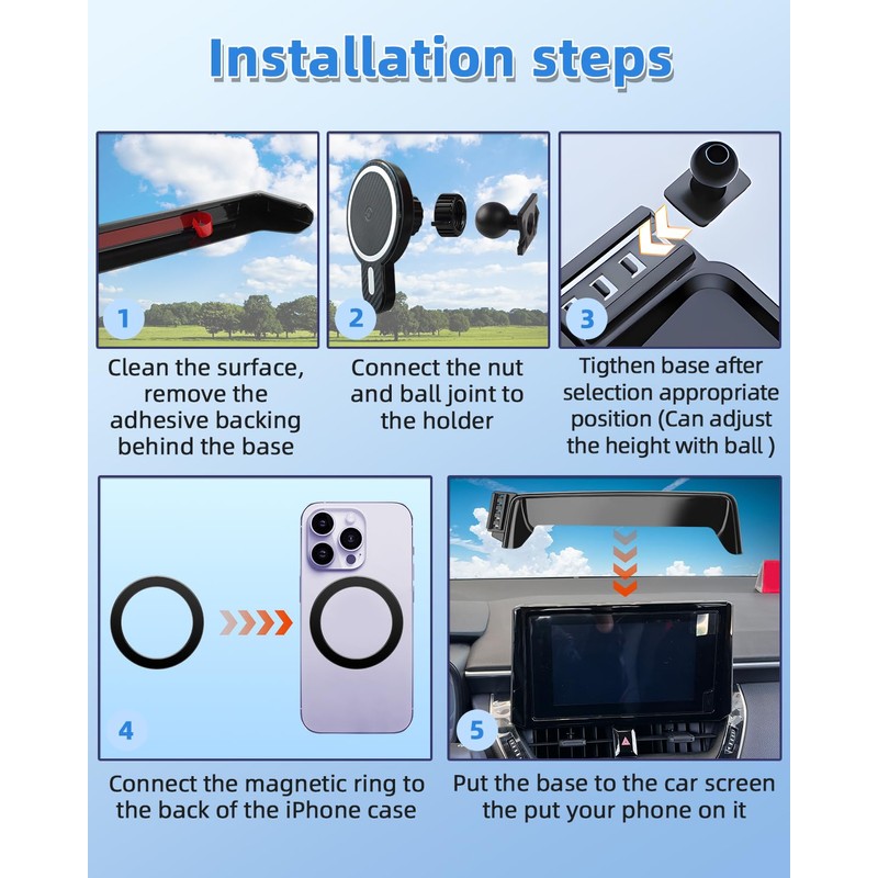 The car phone holder is easily installation in seconds. Ensure your driving safety on the road. Our car Cellphone holder fits for iPhone 15 14 13 12 Pro Max Samsung Andriod and all cell phones from 4 .0 inches to 7.1 inches.