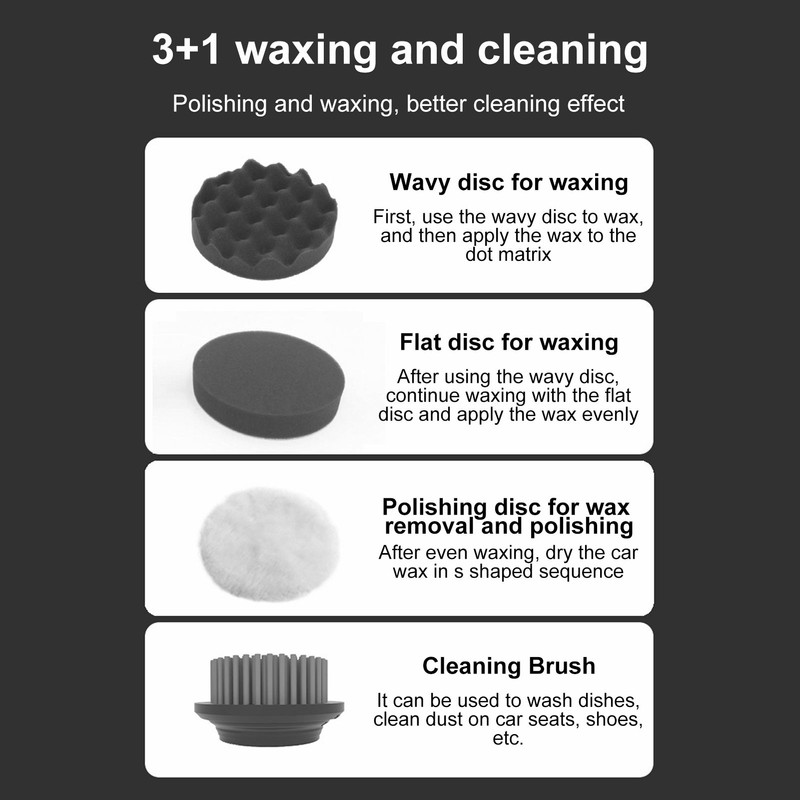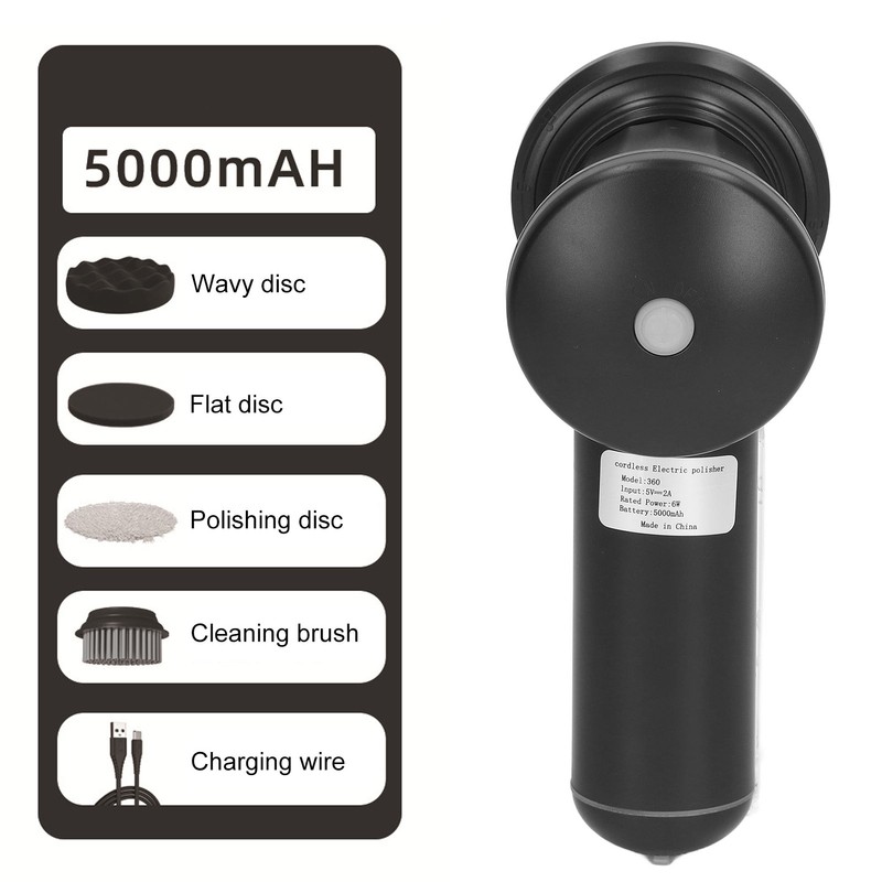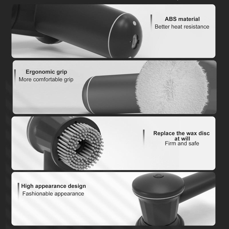 1、Cordless Design: This upgraded cordless car polisher is more portable to use, saving you the trouble of dragging, yanking and positioning wires. 2、Ergonomic Handle: The portable cordless car buffer with ergonomic handle design will be very suitable for you, which is very comfortable to hold and operate. 3、Firm Connection: Designed with a firm tape polishing disc, which is easy to stick firmly to the polishing pad and will not separate. 4、3 Gear Speed: The speed can be adjusted to 1 to 3 gears from 10000 to 15000RPM, suitable for car details, kitchen cabinet polishing, polishing and waxing, making your car shiny like a mirror. 5、Reliable Design: Built in brushless motor, with low noise, strong torsion, stable and even waxing, no damage to car painting. Large capacity lithium battery ensures long endurance, Type C charging is more convenient.