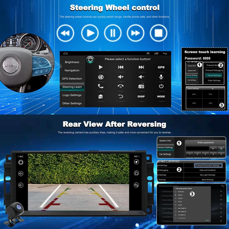 - ✅ 【Built-In Bluetooth & FM Radio】 Jeep wrangler stereo with bluetooth, jeep wrangler radio makes calling and streaming simple. the car radio touchscreen ensures clear voice pickup, and FM radio with 18 presets lets you enjoy local stations wherever you drive.