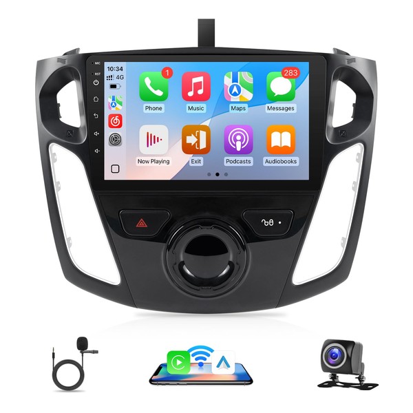 Car Radio for Ford Focus 2012 2013 2014 2015 2016 2017 2018 with Wireless CarPlay Android Auto, 9 inch Screen for Ford Focus Radio, with WiFi/Mirror Link/GPS Navigation/SWC/Backup Camera/Mic