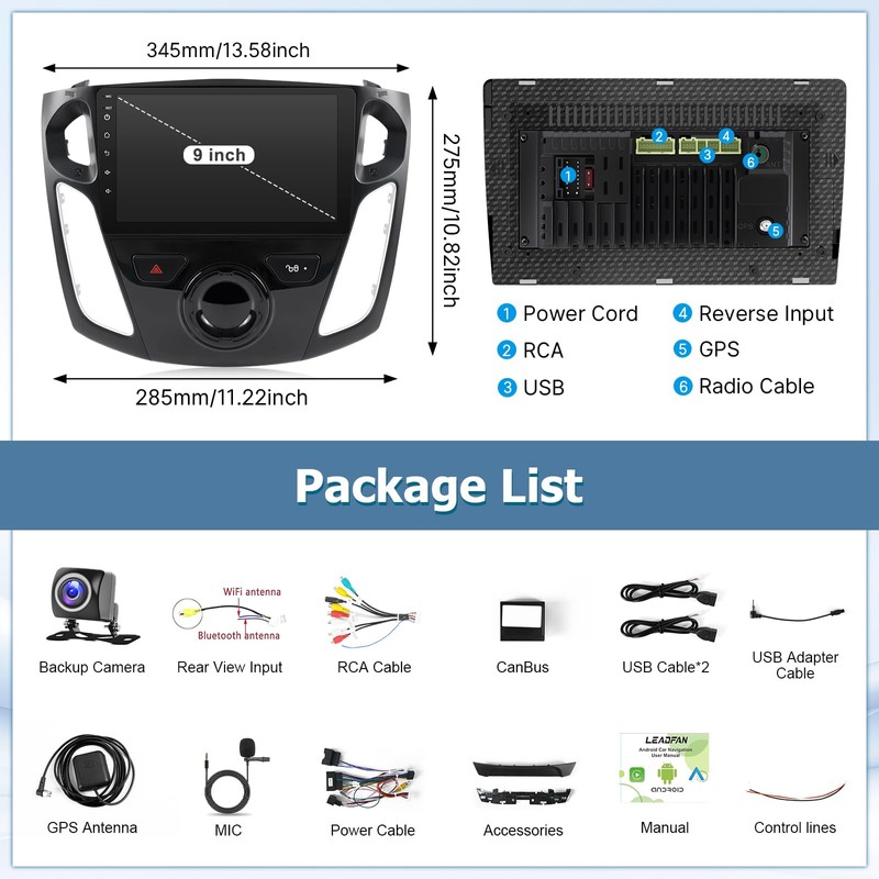 - 🚘Easy Installation: Designed as a replacement installation for the Ford Focus 2012-2018, installation is a breeze with this car stereo. No modifications or additional parts are required. If you have any questions about installation or use, please contact us. Click the seller's name on the product page: Leadfan--Ask a question--Send message to seller.