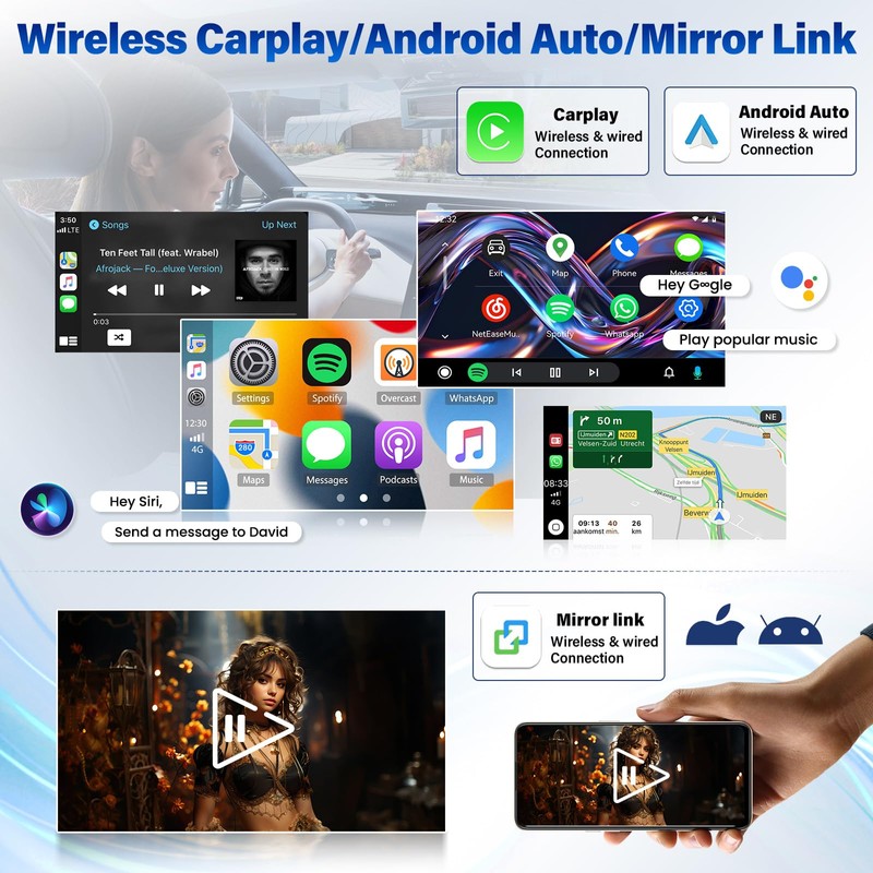 - 【Carplay & Android Auto & Screen Mirroring】Connecting your phone device to the system is effortless for Sienna 2005 radio. 1 Enjoy a seamless wireless CarPlay in-vehicle experience,which connects via Bluetooth. 2 Utilize the full - featured Android Auto in-vehicle system,accessible through both Bluetooth and USB connections. 3 Make use of the screen mirroring function, enabling you to project movies from your mobile phone onto the large screen for a truly immersive entertainment experience.