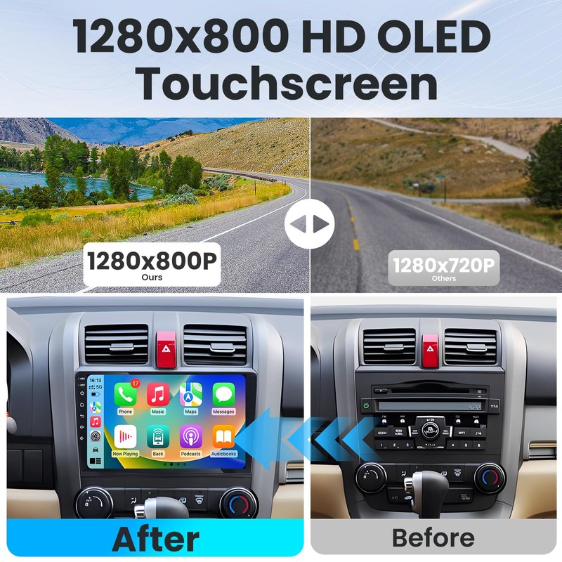 • 【CarPlay & Android Auto】This perfect replacement screen for Honda CRV compatible with wired and wireless CarPlay and Android Auto,enabling seamless integration of your phone's apps,support voice control Siri or Goo-gle Assistant to help you access map navigation, phone, music, notifications, messages and more.Say goodbye to distraction.