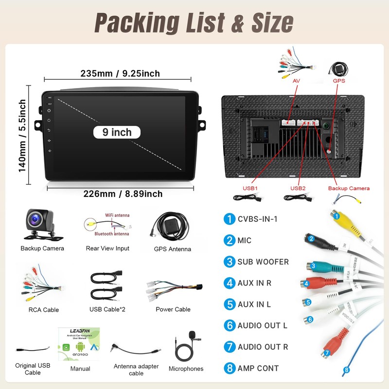 - Bluetooth 5.0: Fast matching Bluetooth connection,The built-in Bluetooth and microphone allow you to make calls, send messages, listen to music, navigate maps, and more without hands-free,let your hands focus on the steering wheel.