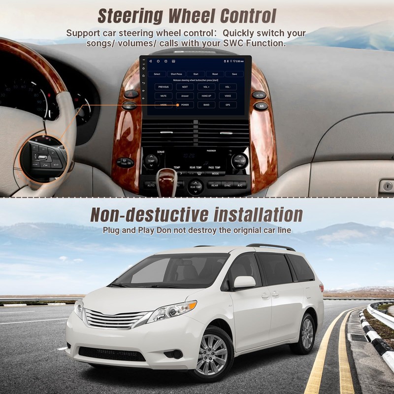 - Applicable Car Models: This 9-inch in-dash GPS navigation head unit is designed for 2004-2010 Toyota Sienna models. Please note: There are two modles to choose from. If your car is compatible with J.B.L premium audio systems or large screen, please choose Model B, otherwise choose Model A.