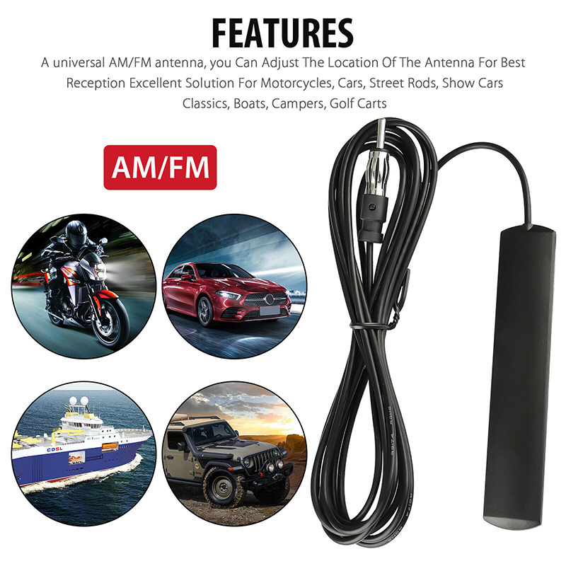 Features: A universal AM/FM antenna, you Can Adjust The Location Of The Antenna For Best Reception Excellent Solution For Motorcycles, Cars, Street Rods, Show Cars, Classics, Boats, Campers, For Golf Carts.