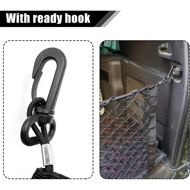 - 【It is applicable to all trunk】With 4 buttonholes and 5 hooks. No matter what kind of trunk you are, it can be installed. The middle net is made of nylon, solid and elastic.