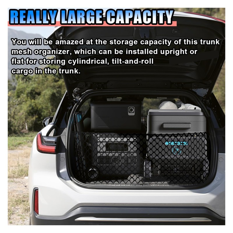 -This car trunk storage net, you can organize and store items by simply putting them into the net bag, saving you time and energy.
