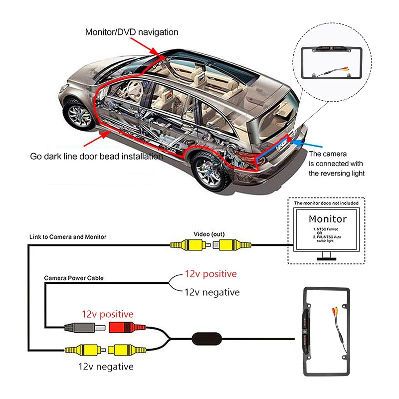 - HD night Vision: Color CMOS (PC1030, 648*488) imager, Rear view camera with 8pcs HD infrared lights, you can see very clearly at night or in dark underground garage, safe backing up during day and night.