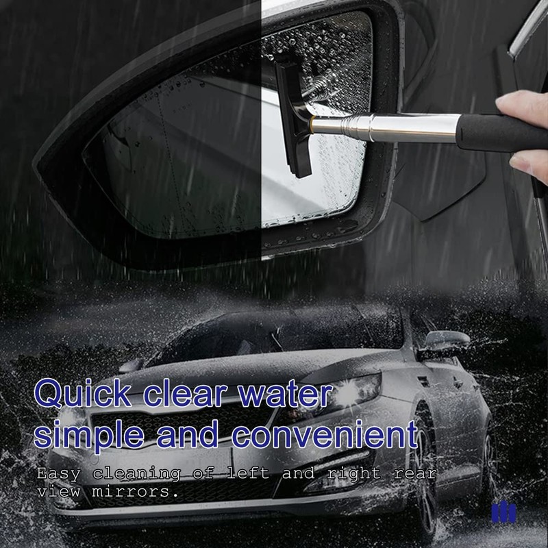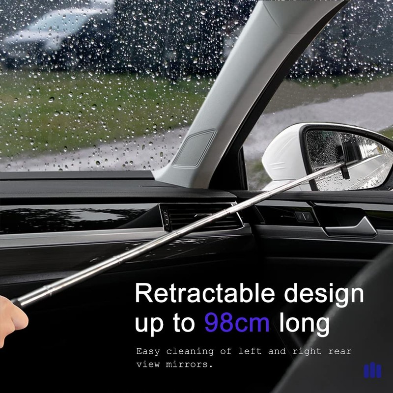 - [Multi functional telescopic wiper rod]: Telescopic design, easy to clean left and right rear-view mirrors. The maximum length is 98cm/38.6 inches. You don't need to get off the car in rainy days, and you can quickly wipe off the water droplets on the left and right rear-view mirrors.