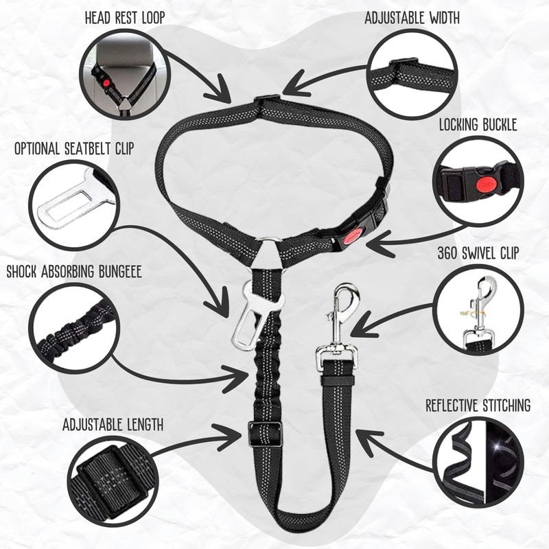 - Dog Seat Belt, 2 Pack Pet Car Seatbelt Headrest Restraint Adjustable Puppy Safety Seat Belt Reflective with Elastic Bungee Connect with Dog Harness in Vehicle for Travel Daily Use