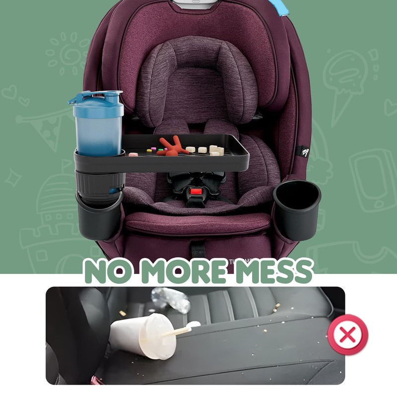 • KID-FRIENDLY MATERIAL: The tray part is made of advanced food-safe ABS plastic, sturdy and kid-friendly for long time using. The base is made of durable rubber, which makes the tray installed firmly in the cup holder and prevent it from falling easily.