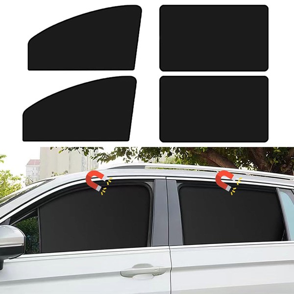 Car Side Window Sun Shades, 4 PCS Window Sunshades Privacy Curtains, 100% Block Light for Breastfeeding, Taking a nap, Changing Clothes, Camping (Front&Back 4pcs)