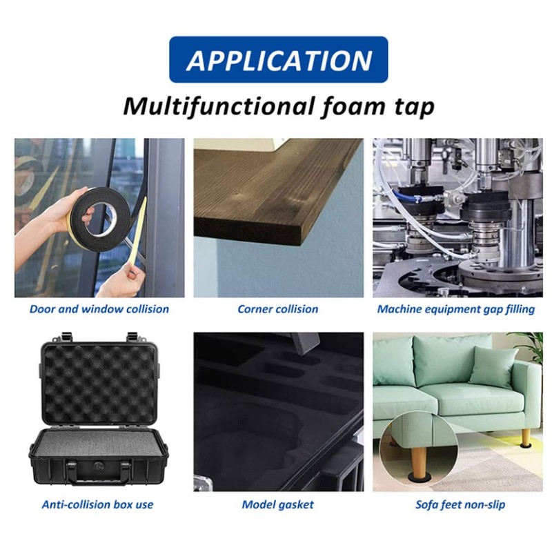 - Application:The single sided foam tape is widely used for doors, window, furniture, cabinets, speaker, pipes, air conditioning sealing